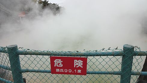 こちらの地獄は、蒸気が凄まじく、お湯が全く見えません。摂氏99.1度という警告もあり、ちょっと近づきにくいですね。