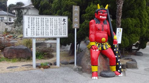 お釜の上に乗った鬼の像がお出迎え。温泉地っぽいチープさがなかなか楽しいです。