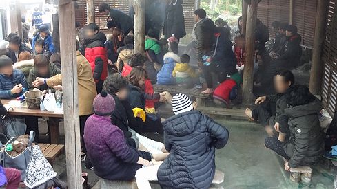 かまど地獄には、大型の足湯施設があります。私の訪問時は、韓国からの団体客に占領されていて、かなりアウェイな雰囲気だったのが残念です。