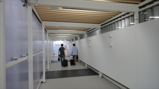 ▲エアアジア・ジャパンは成田空港第2ターミナルを利用しています。第2ターミナル1階端のセキュリティチェックを通過すると、チープな感じの通路を通ります。