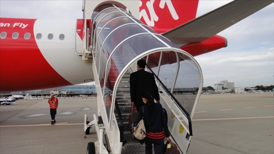 ▲タラップを使って搭乗。機体の後部から搭乗するのって、なかなか新鮮です。