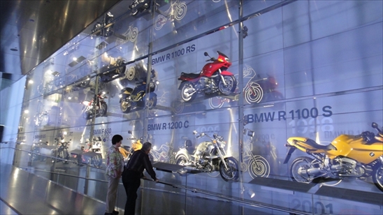 真ん中の高いビルがBMW本社、右側の大きなお椀のような建物がBMWミュージアム、そして左側の四角い建物が組み立て工場です。なんとも近未来的で先進的なデザインですね。
