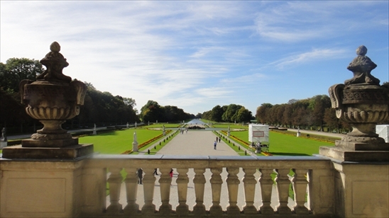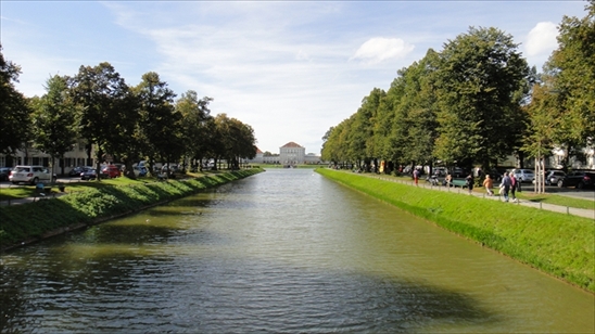 中央駅の駅前から出ている17番の市電に乗ります。緑に囲まれた閑静な住宅街を目にしながら市電に揺られること10数分、Schloss Nymphenburg(シュロス・ニンフェンブルク)という停留所で降りれば、目の前に広大なニンフェンブルク城が広がります。