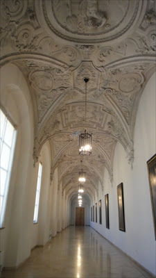 こちらは白で統一されたいささかシンプルな回廊。そのでも天井には繊細な浮き彫りが施されており、十分豪華なんですけどね。