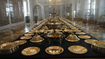 きらびやかな銀の食器の数々。当時の栄光が伺われます。