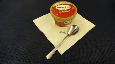 デザートに出されたハーゲンダッツ。コチコチに固まっていて、スプーンでグリグリほじらないと食べられない状態でした。これは酷い。
