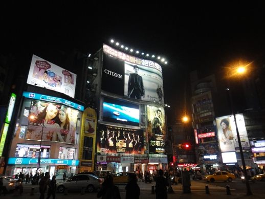 夜の西門は、眩いばかりのネオンサインの光にあふます。台湾の“渋谷”とも呼ばれていて、若者の流行の発信地でもあります。