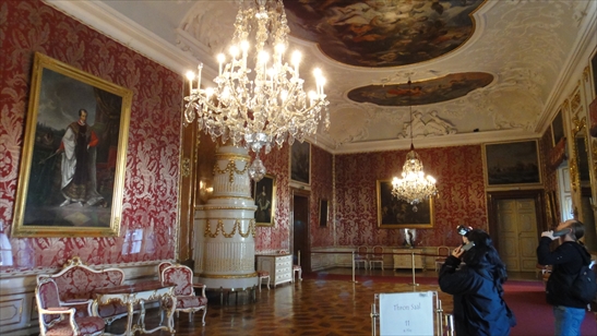 そしてここが最も重要な王座の間です。壁は金箔で装飾が施され、他の部屋よりも豪華さが桁違いのです。神聖ローマ皇帝が利用したと言われています。