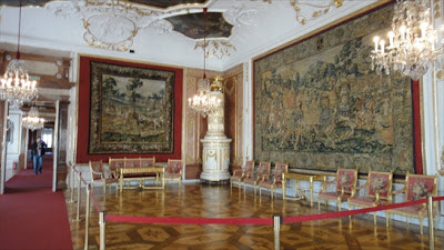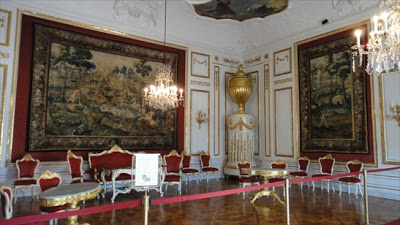 中に入るとそこはもう別世界。古の華やかな暮らしぶりが伺われる贅沢な空間が広がります。これは騎士の間。ザルツブルクで生まれたモーツァルトは、幼い頃、この大広間でその神童ぶりを見せつけ、皆をあっと言わせたそうです。