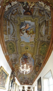 こちらはギャラリー。本来は、壁に掛けられた絵画を楽しむための部屋ですが、絵画よりも天井画のほうが明らかに勝ってしまっています。ここも大司教の権力を魅せつけるための部屋なのでしょう。