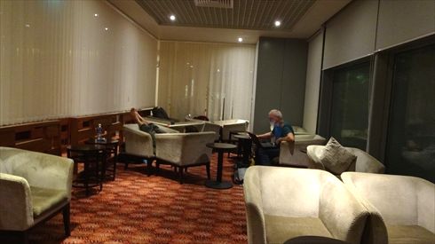 ラウンジは、主に二つのエリアからなっています。こちらはエントランスから見て左側のラウンジエリア。訪問したのは深夜だったので、椅子を二つつなげて仮眠している人もいました。