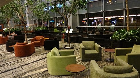 こちらのロビーは第2ターミナルのゲートE40付近にあります。ほんのりと薄暗い照明で、まるでエアラインラウンジのような落ち着いた空間です。もちろんここも無料で使えます。