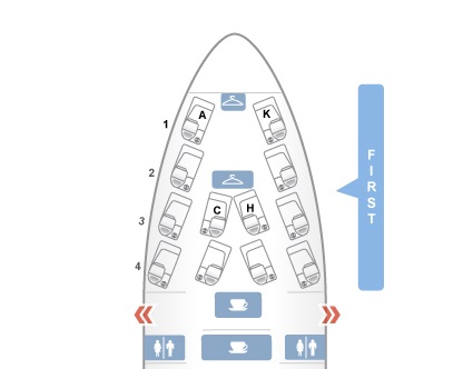 ユナイテッド航空B747-400のファーストクラスは、メインデッキに12席!あの狭いキャビンに12席も詰め込んでいます。