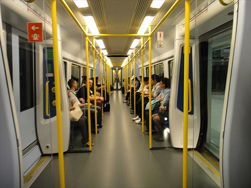 シティーラインの車内は、まるで日本の通勤電車のよう。それもそのはず、実際シティーラインは沿線住民の通勤の足となっていて、市内に近づくに連れて続々と乗客が乗り込んできて、最終的には日本の満員電車のようなすし詰め状態になっていました。