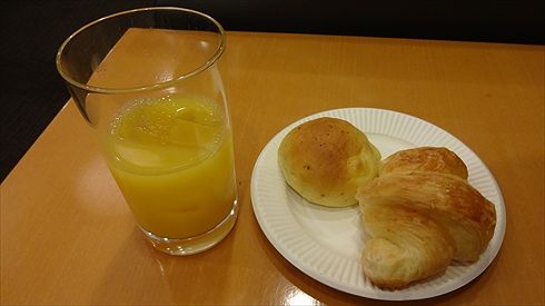 また、クロワッサンとバジルチーズパンも提供されていました(1人2個まで)。とくにこのバジルチーズパンはとても美味しく、本音を言うと3個くらい食べたかったのですが…。これらのパンは、モーニングサービスなのでしょうか、それとも常時提供されているのでしょうか。確認取れず。