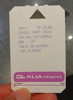 KLIAエクスプレスは、KLセントラル駅発となっています。KLセントラル駅のはずれの方にあるチケットカウンターで、切符を購入しました。運賃は片道RM35。バスに比べて4倍ほどのお値段になりますが、快適性と所用時間を考えたら妥当なのかもしれません。