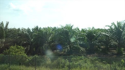 空港に向けて発車です。出発して街中を過ぎると、すぐにヤシ農園の中を走ります。空港までの30分間、ずっとヤシ農園。車窓的には全く面白くありません。