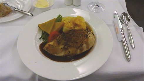 続いてのメインは、肉料理をオーダーしました。「ローストチキンのブラックペッパー、グレービーソースがけ~