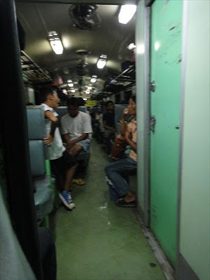 二等席の様子です。農産物を入れた大きな麻袋を抱えた人や、地方からの労働者らしき人などでごったがえしていて、とても外国人旅行客が座れるような雰囲気ではありません。それに床にはところどころ液体がこぼれていて汚いし、完全アウェー状態でした。