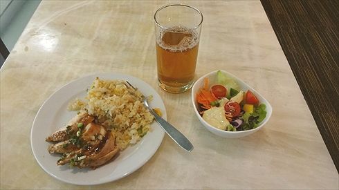 チキンとピラフ、そしてグリーンサラダを頂きました。なかなか美味しかったです。生野菜を提供しているラウンジは、私の中では評価が高いです。