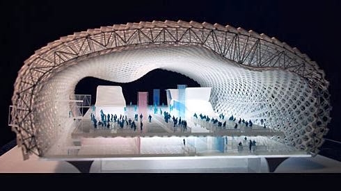 設計は、マッシミリアーノ・フクサス(Massimiliano Fuksas)。鋼鉄を織り上げて、まるで有機体のような局面を創りだす建築で有名です。日本ではアルマーニ銀座タワーを手がけています。