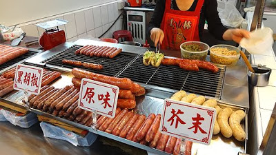 こちらは台湾風ソーセージ。左から、黒胡椒風味にオリジナル味にマスタード風味。ううん、美味しそう。一つ注文してみましょう。