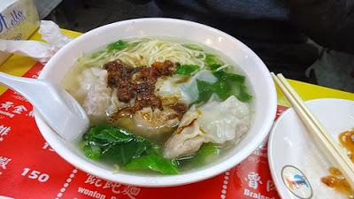 で、注文したのがこちら。ワンタンメンです。スープは意外とあっさり。テーブルにある豆板醤やオスなどを適宜足して、自分好みの味にしてください。
