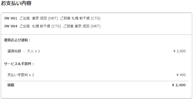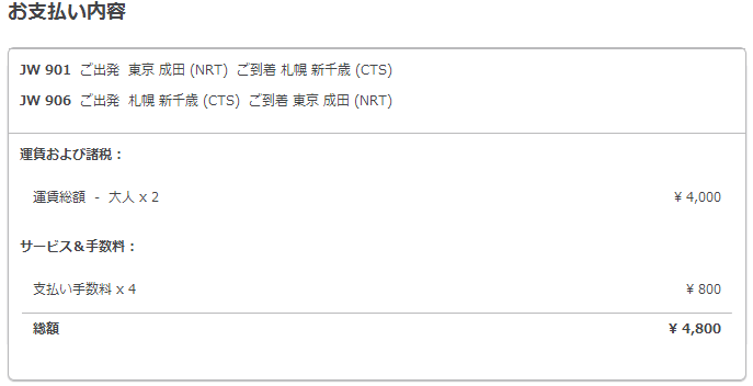 成田⇔札幌の往復1名分を追加で購入出来ました。2,400円也。だいぶサイトにつながりやすくなってきているので、今がチャンスですね。