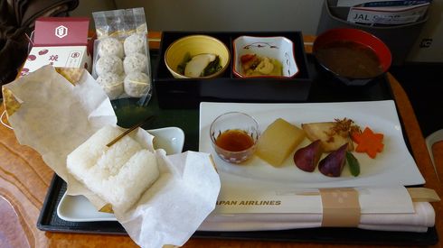 こちらが機内食。俵ご飯に味噌汁、鰤王焼皿に小鉢。スイーツは京菓子司亀屋良長「焼きあづき」でした。焼あづき、とても美味しいですね。今度買ってみようと。