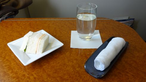 少し食べ足りなかったので、フィンガーサンドイッチをいただきました。ドリンクはスカイタイム。スカイタイムとはJALのオリジナルで、シークァーサーをベースとしたさわやかなドリンクです。