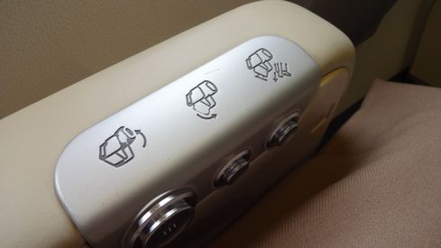 反対側の肘掛けには、シートの各部の設定ボタンがあります。