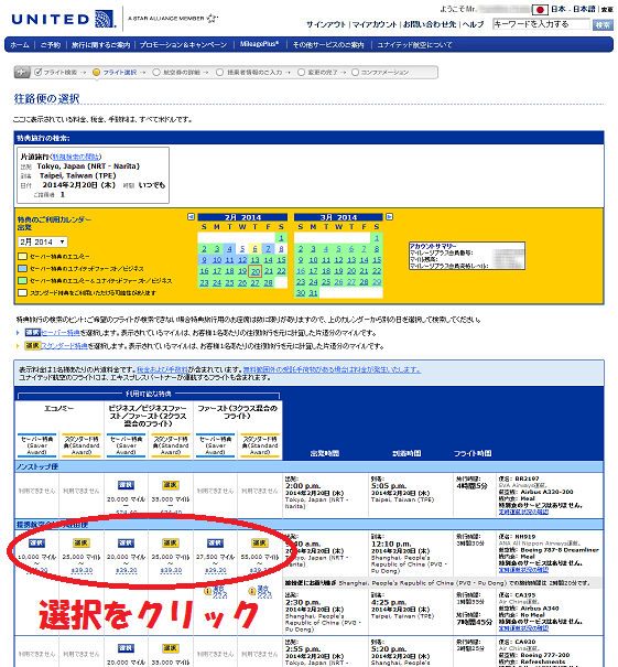 ウェブ上で予約する場合、条件に当てはまるありとあらゆる特典航空券の候補が一覧で表示されます。そのため、当初考えていたものよりも、より都合のいいチケットが見つかることが多々あります。