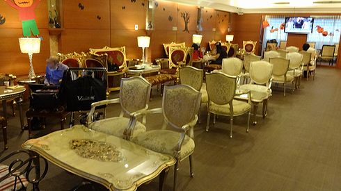 ラウンジ内の雰囲気は独特です。成金趣味のロココ風の椅子とテーブルが並んでいます。私には、少々ごてごてしすぎていて、決してセンスが良いようには感じられませんでした。
