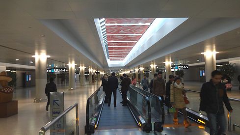 第1ターミナルと第2ターミナルは3つの渡り廊下で結ばれています。それぞれ500mほど歩かなければならないのですが、シャトルバスに乗らなければターミナル間の移動ができない成田と比べると、自由に移動できる分だけ上海浦東のほうが良く出来ています。(厳密に言えば、成田も徒歩でのターミナル間の移動は可能です。お薦めはしませんが。)