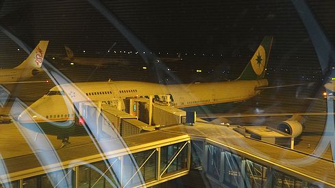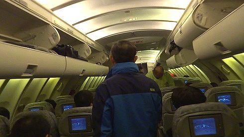 弾丸旅行2レグ目のフライトは、上海浦東から台北桃園をエバー航空のB747-400で飛びます。エバー航空のジャンボジェットは、アッパーデッキにエコノミークラスが設定されており、もちろんすかさずアッパーデッキを指定しました。