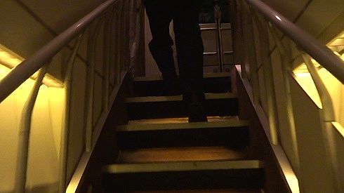 アッパーデッキへの階段を上がります。心躍る瞬間ですね(笑)。