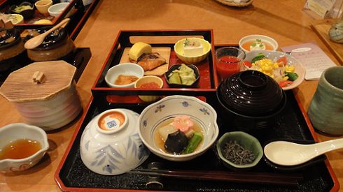 翌日の朝食は、ビュッフェではなく和食をいただきました。結構豪華で、彩りがきれいですね。大変満足の行く朝食でした。
