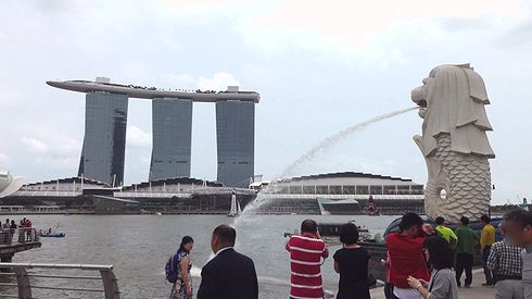バスは、マーライオンからほど近いところに駐められ、15分の自由時間となります。ツアー参加者は皆マーライオンとマリーナ・ベイ・サンズをバックに写真を撮りまくっていました。