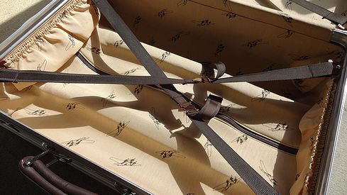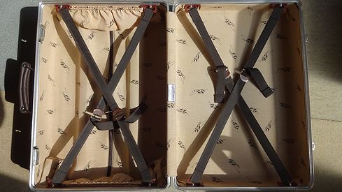 内部はこのようになっています。欠点は、ディバイダーがない点ですね。サルサデラックスなどには、リモワ独特のディバイダーが標準装備されているのですが、クラシックフライトはバンドのみ。ディバイダーがあるとないとでは、使い心地が全く異なります。