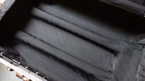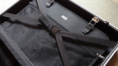 ポケットを取り払うと、凹凸のある底面が現れます。真ん中に走る2本の突起は、取っ手を収めている部分ですね。普通なら邪魔になるところですが、この凹みがちょうどワインボトルと同じくらいの幅になっていて、海外で購入したワインを収めるのにはとても重宝しました。今回の旅行ではワインを3本購入し、Tシャツなどを緩衝材代わりにボトルに巻きつけて凹部に収め、きっちりと固定しました。フラジャイルタグを付けてもらい、受託手荷物としてエアラインに預けましたが、1本も割れることなく無事に持って帰ることが出来ました。