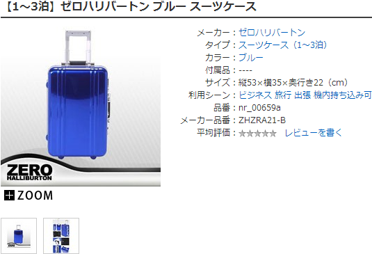 今回レンタルしたのはこちらのゼロハリバートンのブルーのスーツケースです。色が特に気に入ったので、即レンタル予約しました。