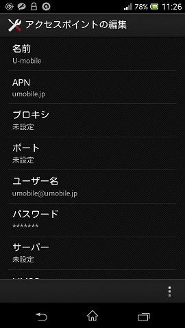 - 認証ID(ユーザー名)…umobile@umobile.jp