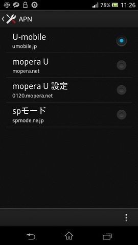 19. すると、さきほどのAPN画面に、今入力した「U-mobile」が新たに追加されていますね。これで設定は完了です。
