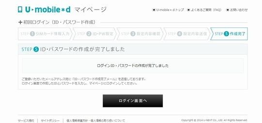 12. 「ID・パスワードの作成が完了しました」というメッセージが出れば、成功です。「ログイン画面へ」をクリックして、早速マイページにアクセスしてみましょう。