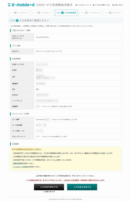 3. 入力情報の確認画面が現れます。間違いがなければ、「入力内容を送信する」をクリックします。