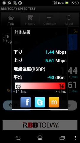 下りが1.44Mbpsですか。ホームページ閲覧や普通の動画には全く支障のないスピードですが、高画質動画になるとやや心もとないかも。楽天ブロードバンドLTEが同じ時間帯で5Mbpsを超えていたので、LTE回線としては遅いと言わざるをえないですね。それでもなお、1.44Mbpsで1GBまで680円/月(ダブルフィックスプラン)というのは、魅力的です。