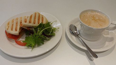 更に嬉しいのが、スタッフさんが簡単なホットミールを作ってくれるのです!私がオーダーしたのはチキンパニーニ。これが激ウマでした!