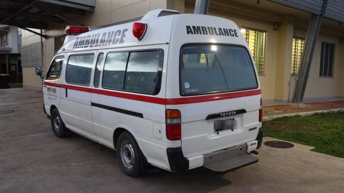 救急車ももちろん日本車。日本で使われていた中古の救急車をそのまま持ってきたようです。