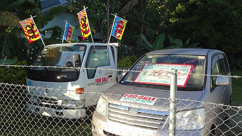 車といえば、トンガを訪れて最もびっくりしたのは、街中を走る車の殆どが中古の日本車だということです。「(有)○○内装」など、日本で使われていたときの塗装がそのままで走っているのです。トンガは左側通行ですし、日本車が都合がいいのでしょうね。