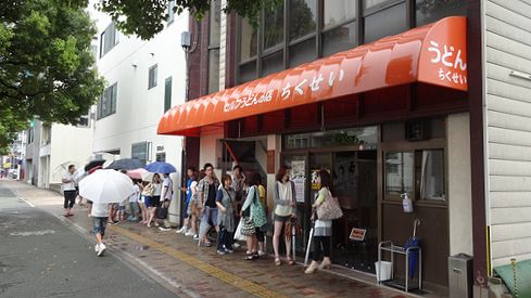 11時に開店です。およそ15分ほどで店内に入ることが出来ました。店内は人でごったがえしています。テーブル席のほかも立ち食い用テーブル席もありませした。奥に陣取っていた運動部系男子高生と思しき一団は、このお店の常連らしく、うどん目当ての観光客のみならず、地元の人からも愛されてるのがよくわかります。
